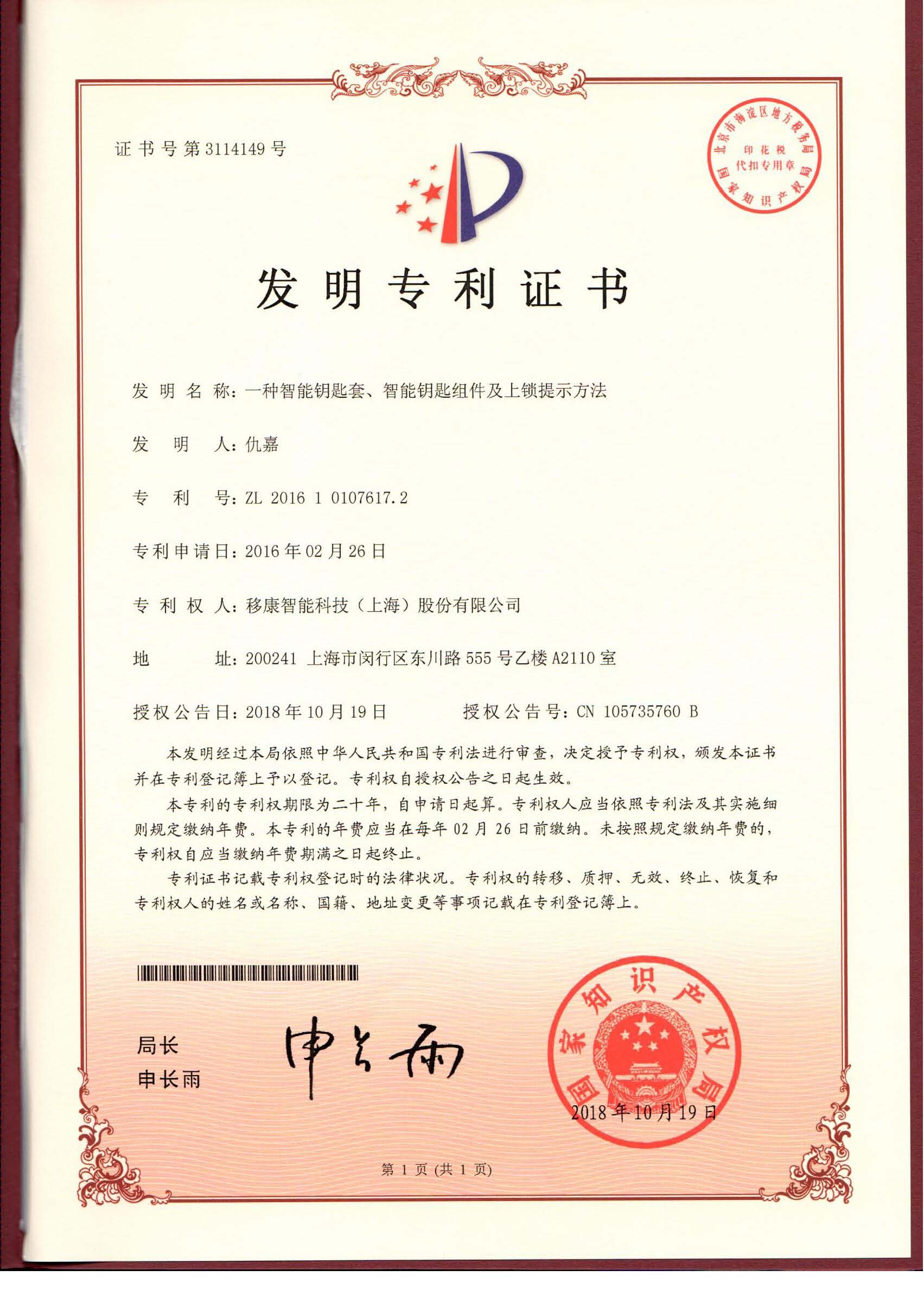 【發(fā)明專(zhuān)利】一種智能鑰匙套、智能鑰匙組件及上鎖提示方法